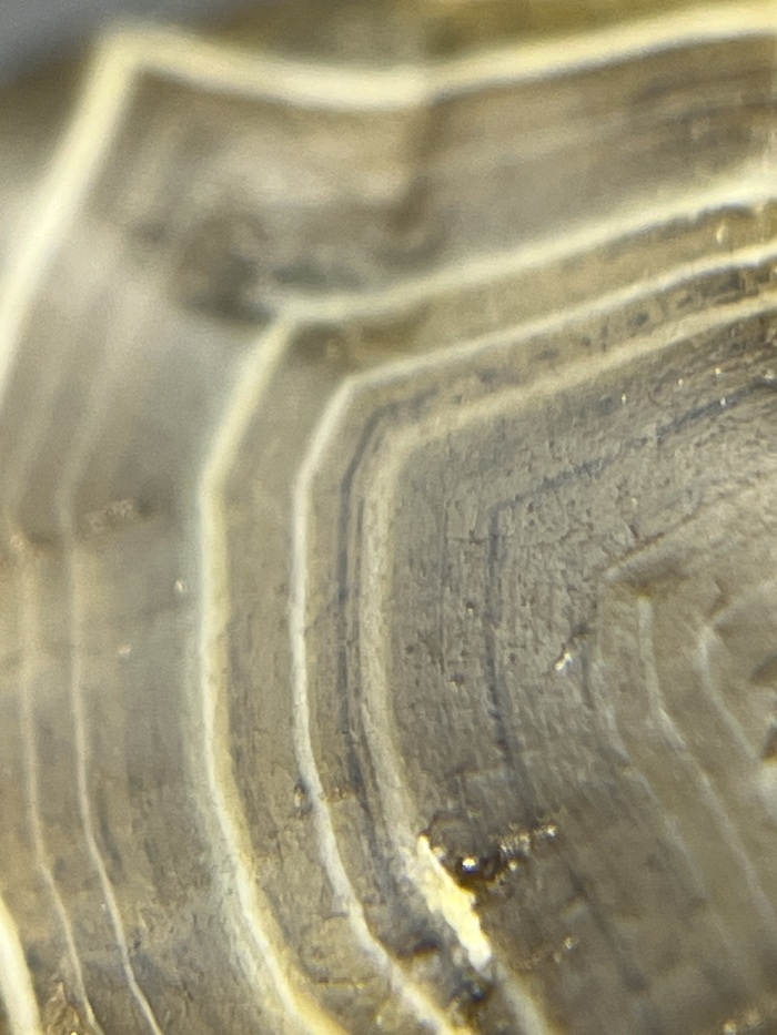 Финальная полировка у меня обычно проводится на войлочном самодельном диске с окисью церия. И уже несколько раз именно на этом этапе я получала вместо зеркального блеска царапины! Вот это очень обидно. Смотрите сами.