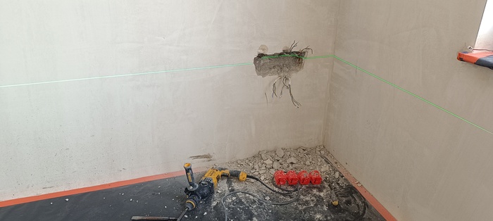 Что хочется сказать, при разметке стен, пользуйтесь лазером, товарищи! Или хотя бы просто отмеряйтесь от нулевой метки, а не от чернового пола!