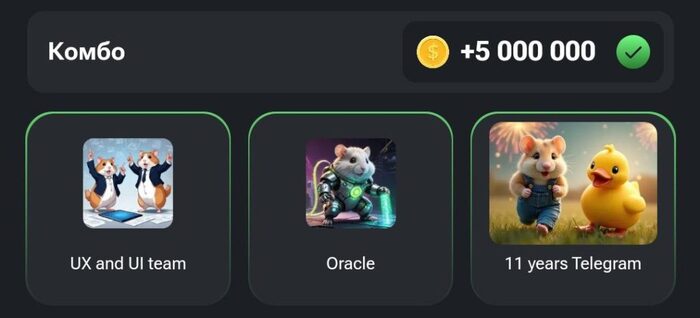 Комбо карты в Hamster Kombat – это специальные карты, которые можно комбинировать для получения дополнительных бонусов. Секретные комбинации карт могут принести игрокам до 5 миллионов монет в день.