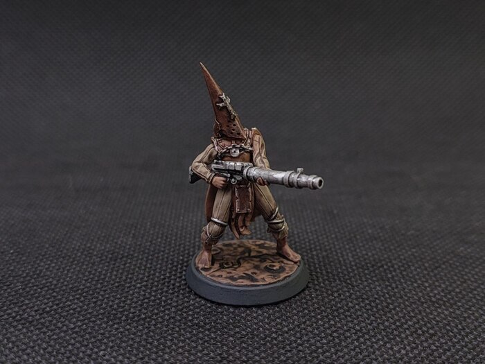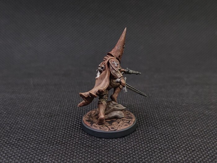 Святой воин траншей. Считает своим религиозным долгом совершать паломничество на священные поля битв, чтобы сражаться с еретическими легионами. Паломники носят железные капироте, чтобы изолировать свой разум от ужасов войны.