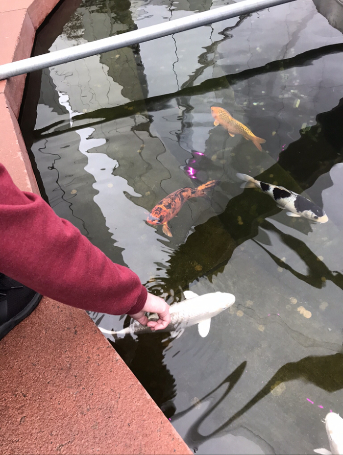 - Карпы. Да, нельзя. Но, мы их все таки аккуратно, но погладили, нежнее нежного;