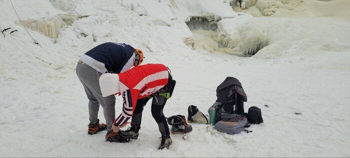 Собственно сам полаз,лёд хороший,хотя местами и с дырками с проточной водой
