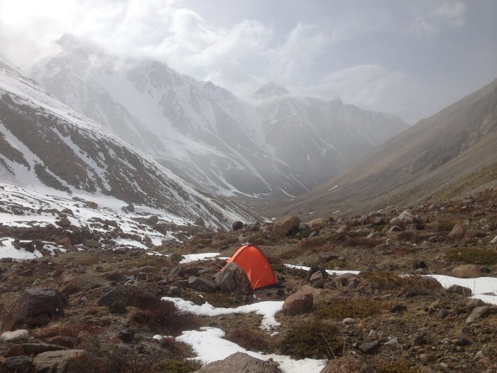 Не смотря на порывы ветра в 20 м/c (мчс прислало смс как раз во время разбития лагеря), заночевал на хребте спрятавшись между скал.