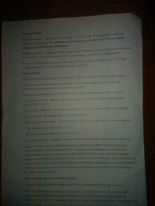 Сейчас на пикабу я заметил много постов, где пользователи негодуют, мол "почему им звонят эти агенты, пробуют что-то втюхивать, хотя я уже пользуюсь их компанией" Поймите, иногда у агентов продаж просто нет полной информации. Они приходят в офис, им дают листок с номерами (иногда есть и компьютер, но даже там не всё написано) и они поочерёдно их обзванивают. Обычно, это базы данных конкурентов. Иногда, уже устаревшие. Поэтому если среди номеров попадается тот человек, который использует услуги именно их компании, то продажник постарается "порекомендовать" другие дополнительные услуги, либо вежливо закончить разговор, задав для приличия ещё пару вопросов типа "Можете оценить качество предоставляемой услуги от 1 до 10?".