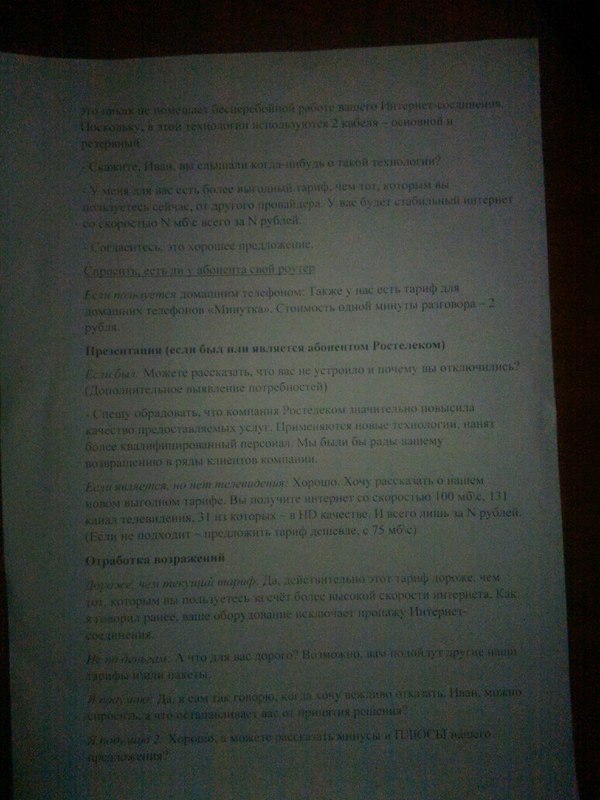 5) Зарплата начисляется агентам исходя из количества проданных услуг и от того, какие они. С простой продажи интернета агенту идёт в карман 300 рублей. А вот уже с продажи пакета - 1100. Поэтому вас так старательно будут уговаривать на подключение телевидения. Просто нужны деньги.