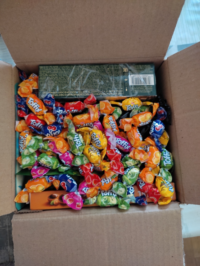 Куча конфет! И упаковка чая, ну точнее я так думала, но об этом потом.