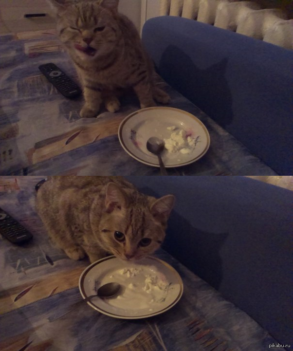 Kata5trofa Моя киса Соня впервые попробовала мороженку 11 лет назад [моё] Кот Мороженое Милота Няша