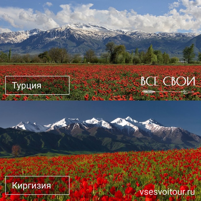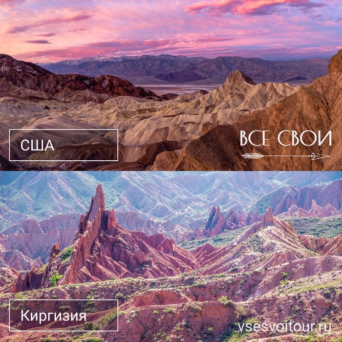 Друзья, помните наши коллажи со сравнением Киргизии с другими странами? Мы пошли дальше и решили посмотреть, на какие уголки нашей планеты еще похожа природа Киргизии.