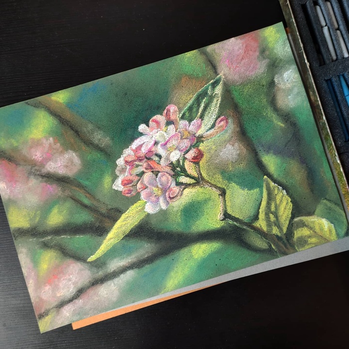 Зарисовка на черной бумаге пастелью. Лес с какой-то фотографии
