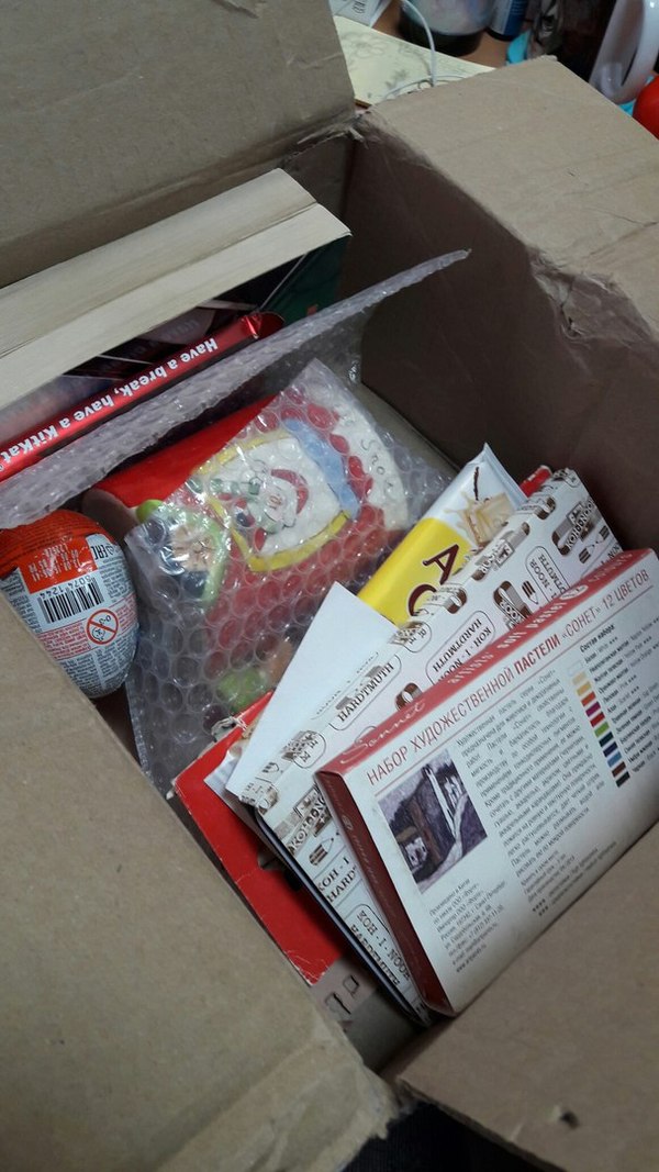 Уже февраль, а только делаю пост. Ну лучше поздно чем никогда. Посылку от своего Санты я ждала долго, нервничала, переживала. За окном стояло 15 января, а посылки все нет. Но тут, о радость, долгожданный презент прибыл. Пункт отправления - Набережные Челны, пункт прибытия - Москва.