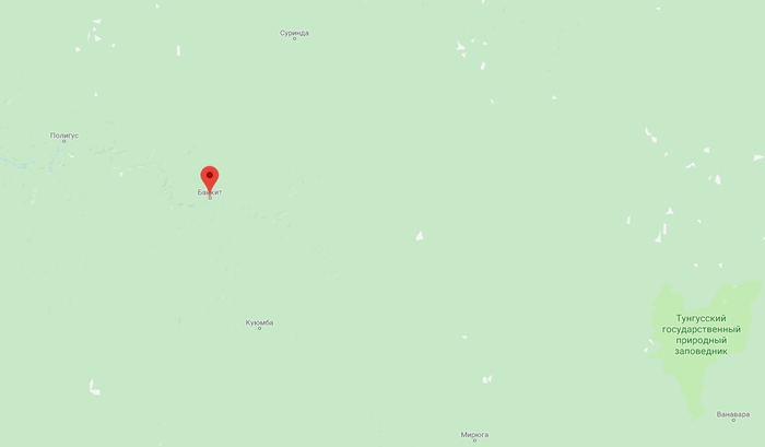 Случайно обнаружил настоящую аномалию на картах Google. Ищем район Тунгусского заповедника и смотрим фотографии: Байкит, Суринда, Полигус, Куюмба: https://www.google.ru/maps/place/%D0%91%D0%B0%D0%B9%D0%BA%D0...