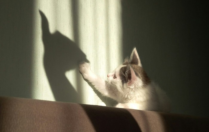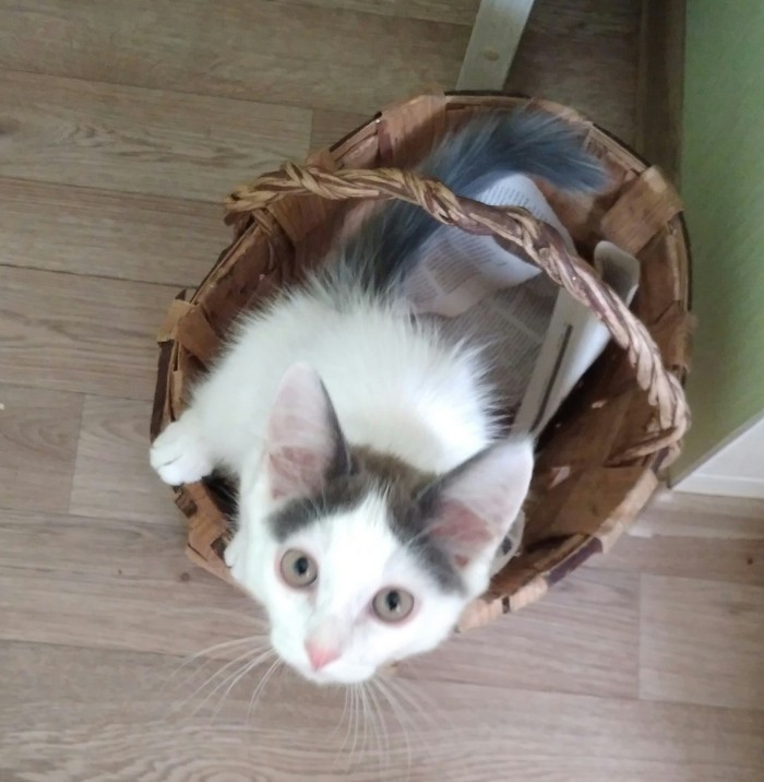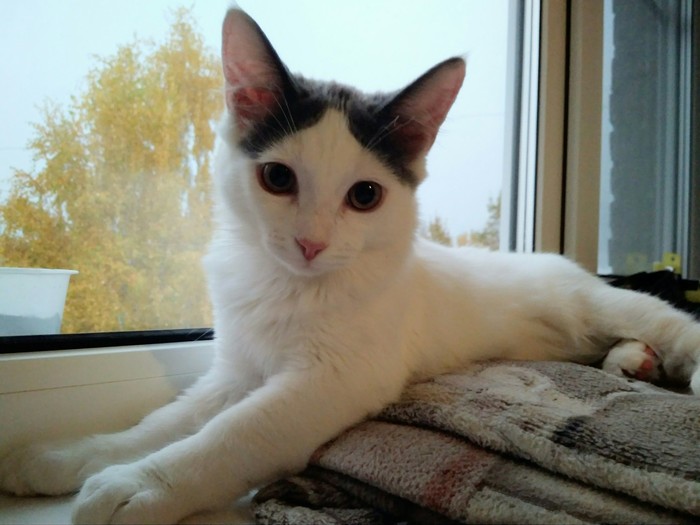 К нам пришёл котик в августе. Пришёл на пятый этаж, зашёл в квартиру, когда мы собрались выходить. Обрёл табурет и обитал там два дня с перерывами на пипи и поесть. Лоток, кстати, моментально освоил. Миска и туалет остались от кошечки, которую отвоевала у меня моя мама)))))