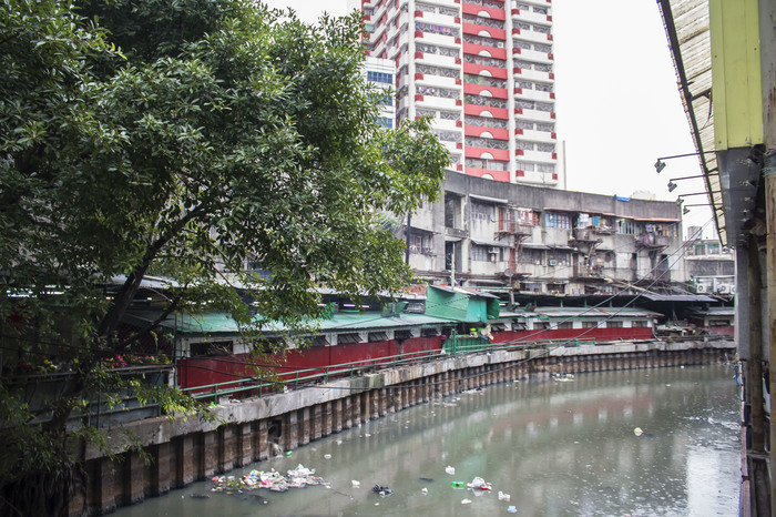 а так же бедные районы в которых люди спят прямо на улице и детей собирающих еду со столов местных кафе (фотография одного из каналов пронизывающих Манилы рядом с китайским кафе).