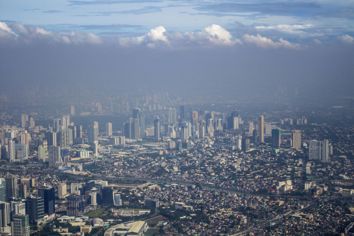 Воздух здесь достаточно грязный, часто встречал людей с масками на лице. Для наглядности вот фото одного из районов Манилы с борта самолета, контраст бросается в глаза: