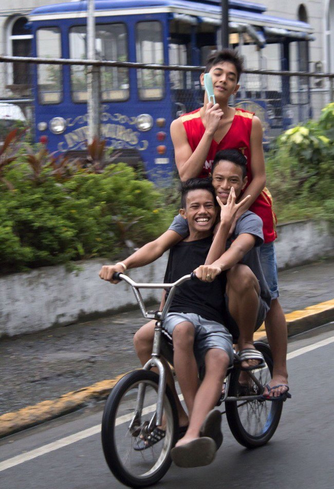 Вот просто дети на велосипеде в одном старых районов Манилы: