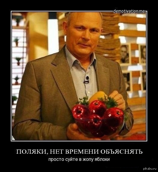 "Дорогие Украинцы! Не верьте тем "злым и завистливым ватникам", которые говорят, что у вас в дальнейшем всё будет очень плохо. Это всё ложь, кисилёвская пропаганда и злобные происки "клятых москалей". Всё это из-за их жгучей ревности к Евросоюзу и зависти к вашему светлому и богатому будущему.