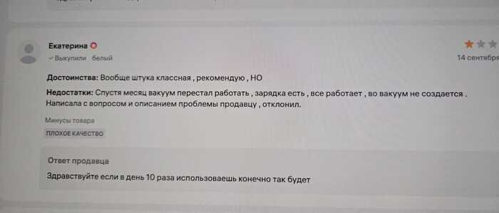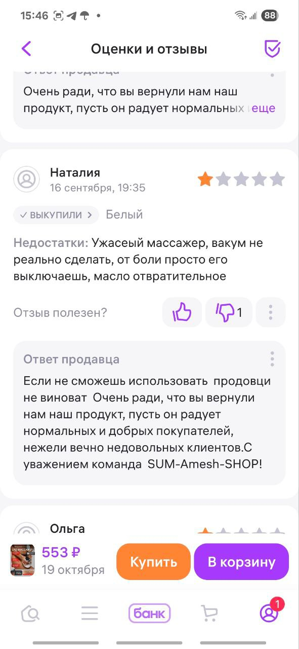Зашла в отзывы (я и до покупки их читала, но ответы продавца игнорила, а вы их читаете?). В отзывах продавец откровенно глумится над недовольными покупателями.