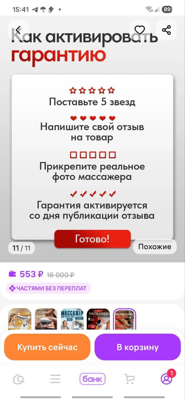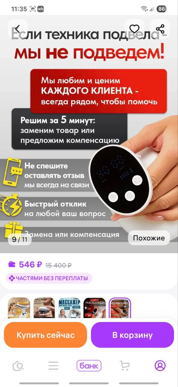 У продавца в карточке товара написано