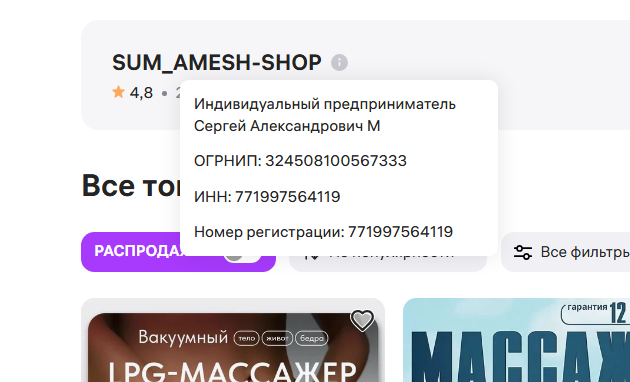 Лезем в карточку продавца. Серёжа? Проверяем по ИНН.