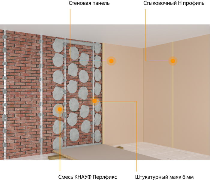 Ещё одна причина почему такой способ используют редко, это потому, что при каркасном способе есть возможность проложить под панелями коммуникации и заложить дополнительный материал для утепления или звукоизоляции. А ещё каркасный способ более практичен в плане демонтажа или замены отдельных панелей в случае повреждения или износа.