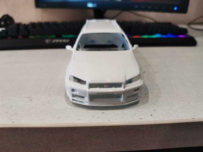 Намечается у меня довольно интересная стройка. Товарищ начинающий моделист попросил помощи - цитата: "Кузов покрашен, залакирован, нужно прокрасить мелочевку типа уплотнителей, сделать расшиву, фары, повторители и т.д.". В процессе разговора выясняется, что товарищ абсолютно не имея опыта в стендовом моделизме решил поженить два кузова - nissan stagea от фуджими и gtr r34 vstec от тамии. На выходе должно получится что-то такое, что в странной Японии называется как фейслифт (собственно как понятно из описания - соединить малосоединяемое)