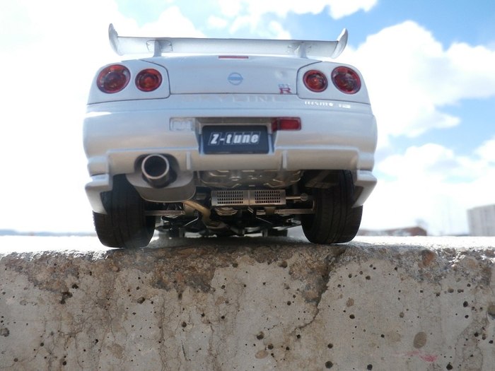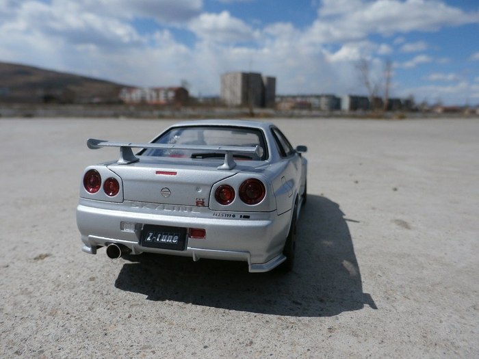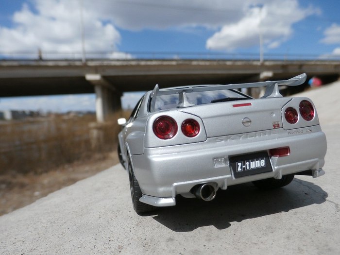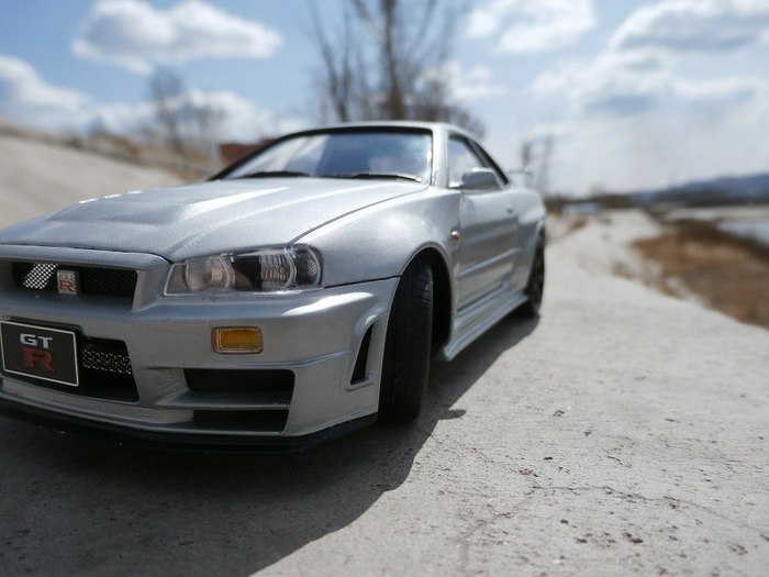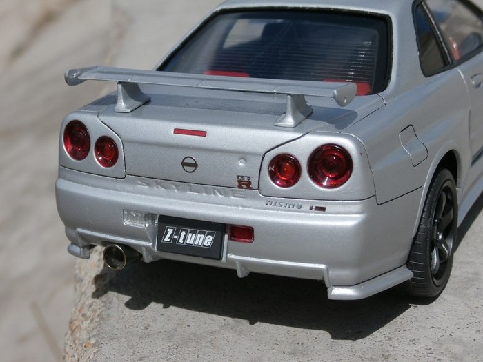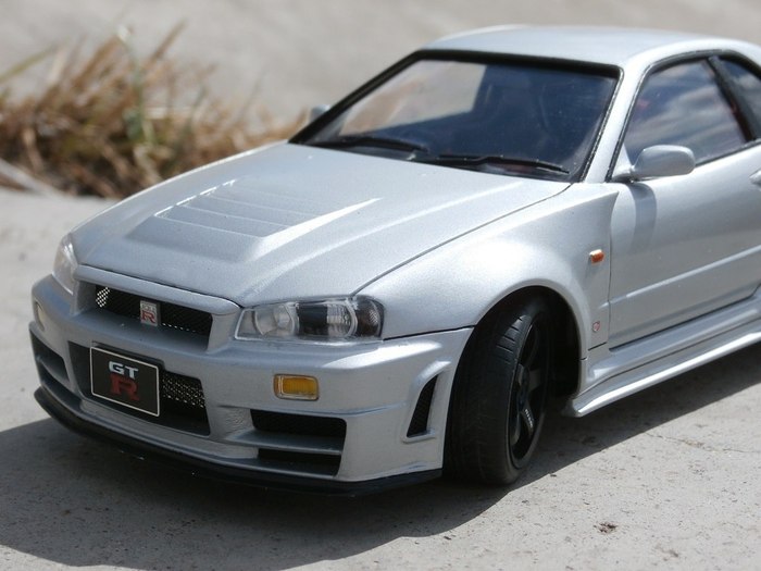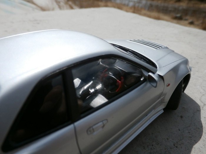 И опять 25! Как ни начну полировать, так обязательно протираю лак. Раза 4 я смывал краску с грунтом с кузова и заново заливал этот кузов. И ровно столько же раз я портил ЛКП. В пятый раз, когда этот скайлайн плакал уже кровавыми слезами, я понял что еще одной отмывки он просто не переживет (пластик стал хрупкий хрупкий), я решил лаком залить, но полиролить по самому минимуму, чтоб не протереть. До и вообще он меня так заколебал, что я уже просто старался хоть как-то разделаться с моделью. По итогу кузов с огрехами в полировке, фары бликуют без черного канта, немного уделаны с торцов клеем, спойлер так вообще без дополнительного ребра жесткости (оно было смыто в раковину в процессе очередного отмывания краски, сифон и вся труба была разобрана вплоть до чугунной домой трубы, но увы, деталь уплыла). Вот такая получилась противоречивая модель. Я конечно рад, что я его доделал, но смотрю я на него со стыдом. Схалтурил