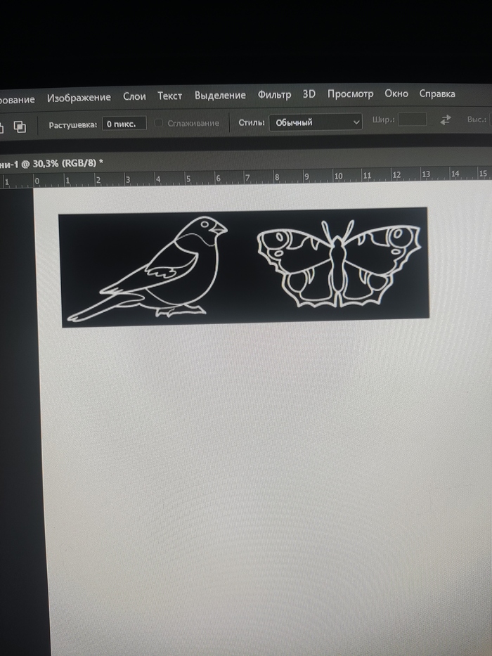 ...нанести рисунок с помощью фоторезистивной плёнки. В фотошопе нарисовал бабочку и заодно птичку: