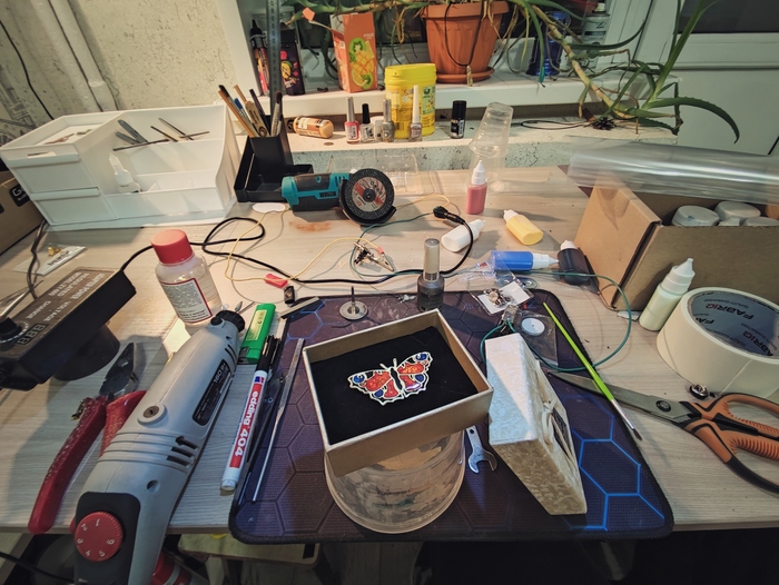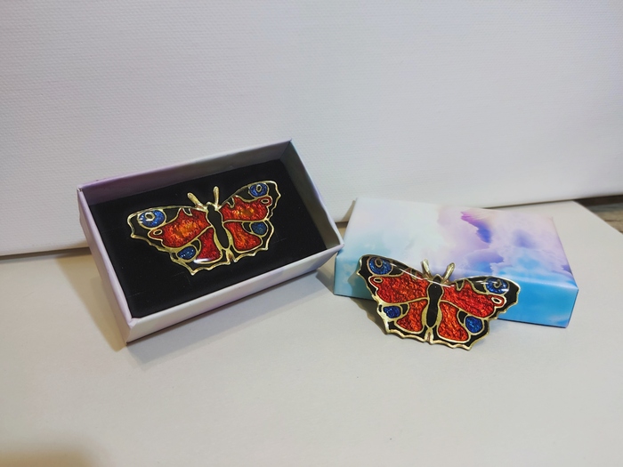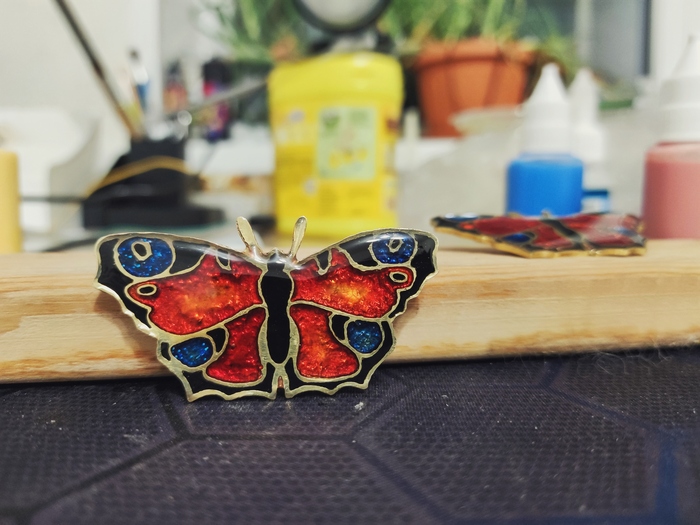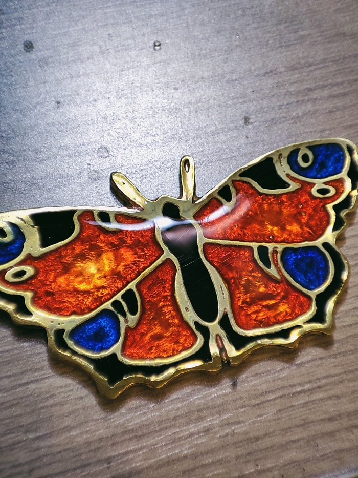 Тут было много косяков, так как смола то вытекала с заготовки, то застывала с пузырями. Но я превозмог и первая бабочка красавица отправилась в подарок маме.