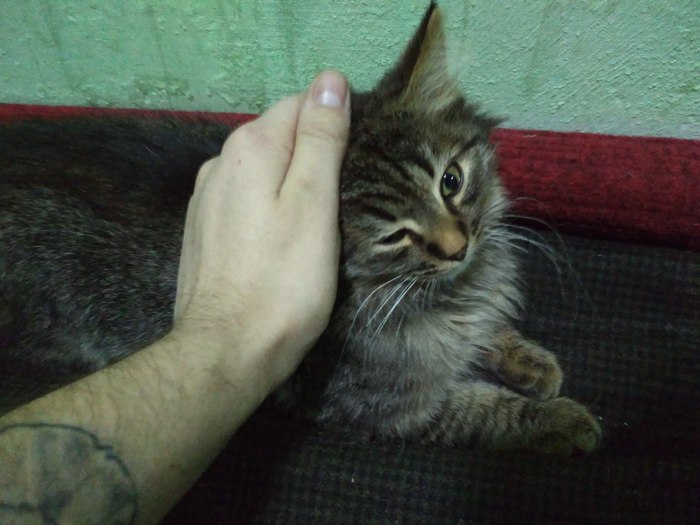 Серочерный котик немного пугливый. Думаю его шугали мелкие говнюки на улице.