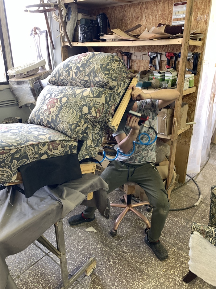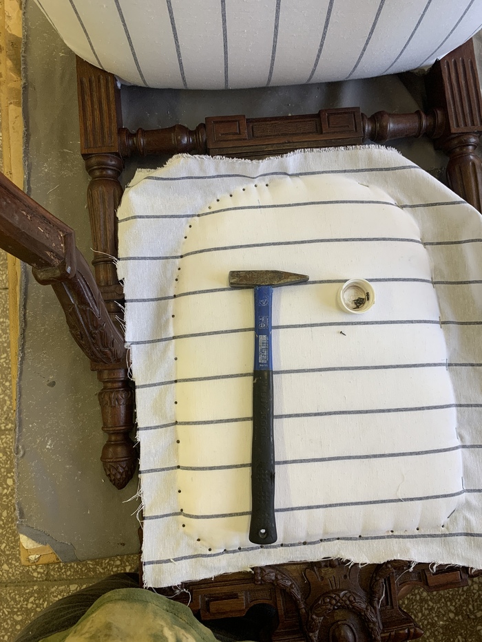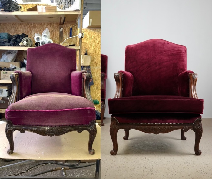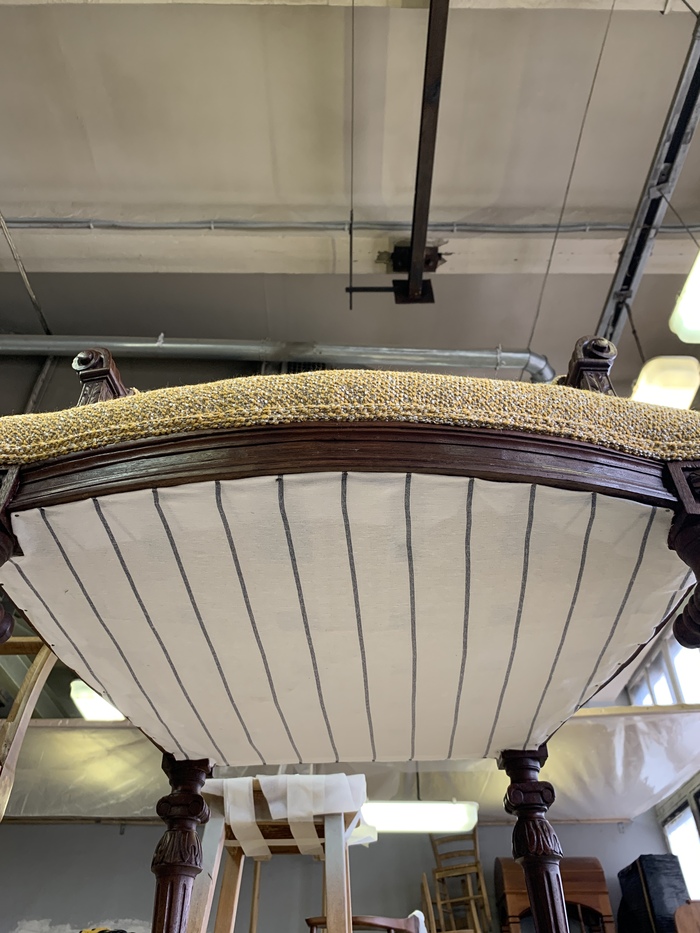 Ножки не реставрировали. Работали только с обивкой (чехлом).