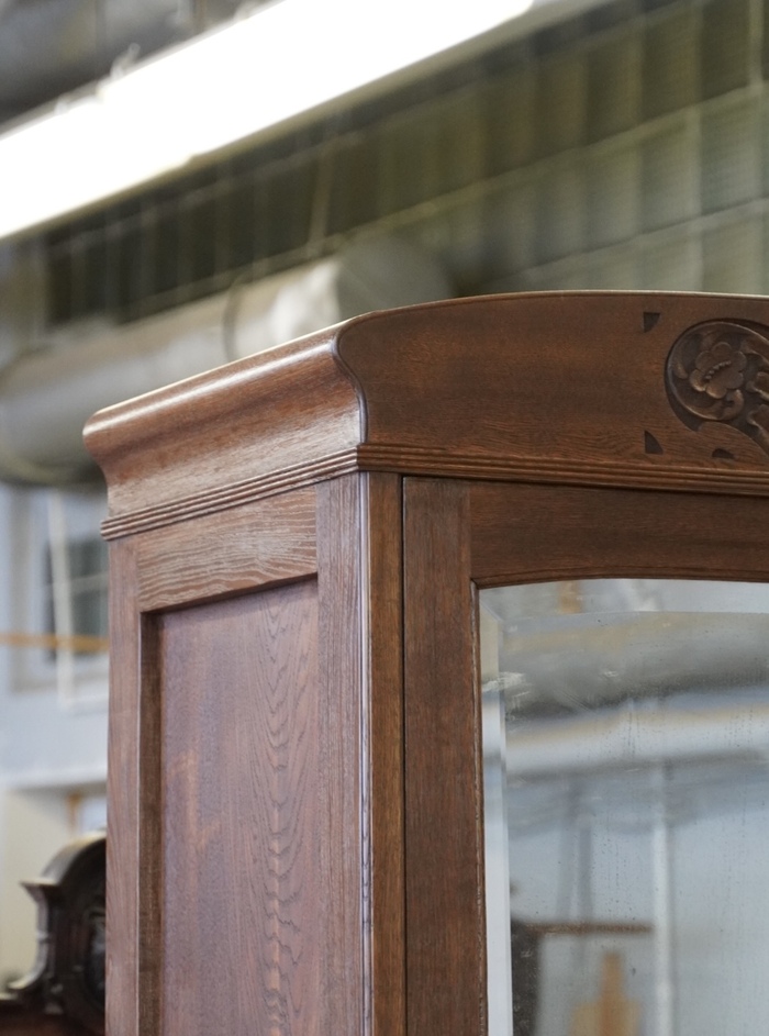 Этот шкаф начала XX века, изначально выполненный в дубовом оттенке, обрёл новую жизнь в цвете тёмный орех.