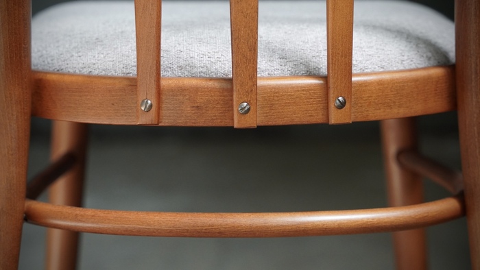 Обновили чехословацкие стулья Лигна. Сиденья перетянули рогожкой MYS 912.