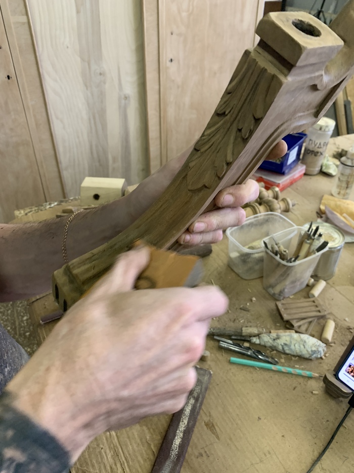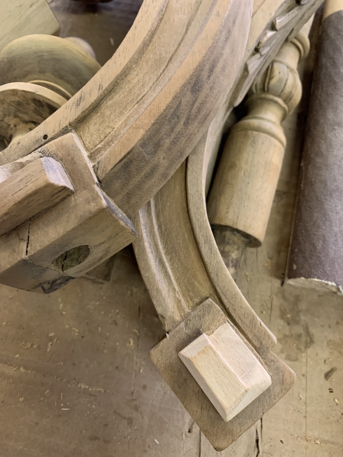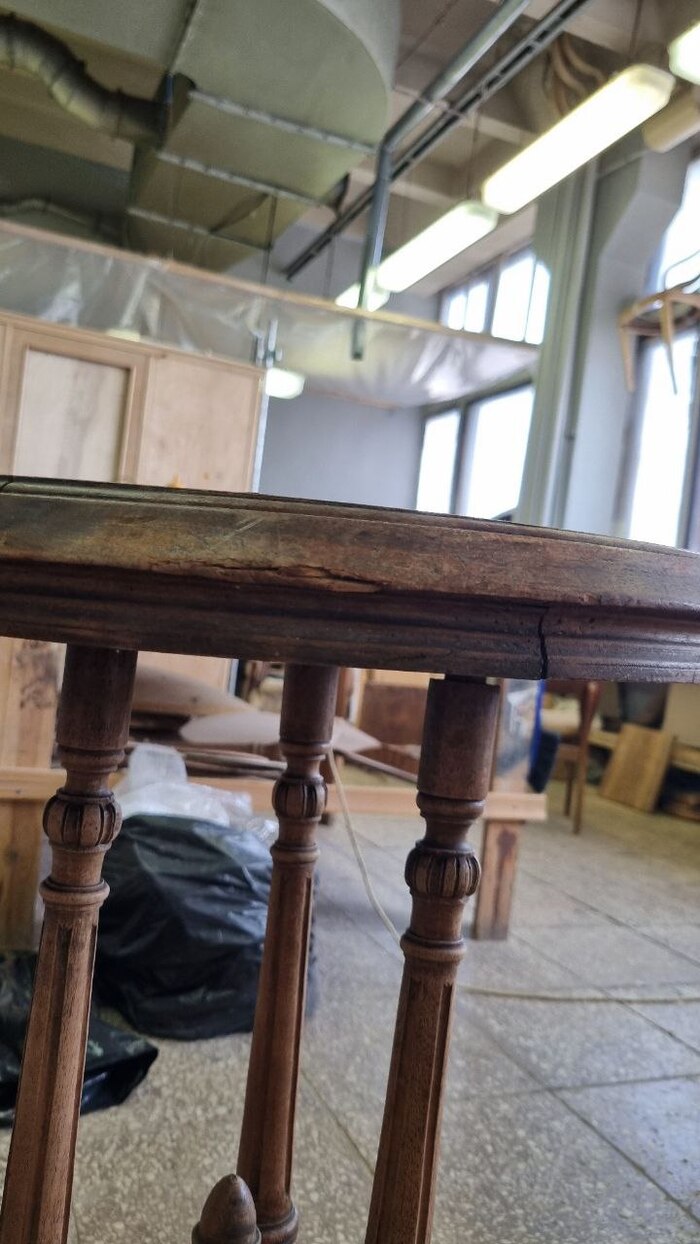 Помните этот ушатыный стол из этого поста Высший пилотаж? Весь шпон был в самом печальном состоянии. Отсутствовали опоры на ножка и часть резного декоратора.