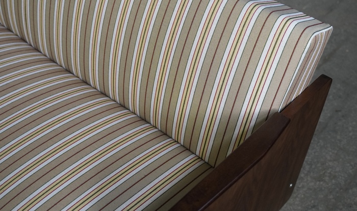 Была проведена реставрация: восстановлена одна боковая деталь сиденья, декоративные детали ножек и чеканка.