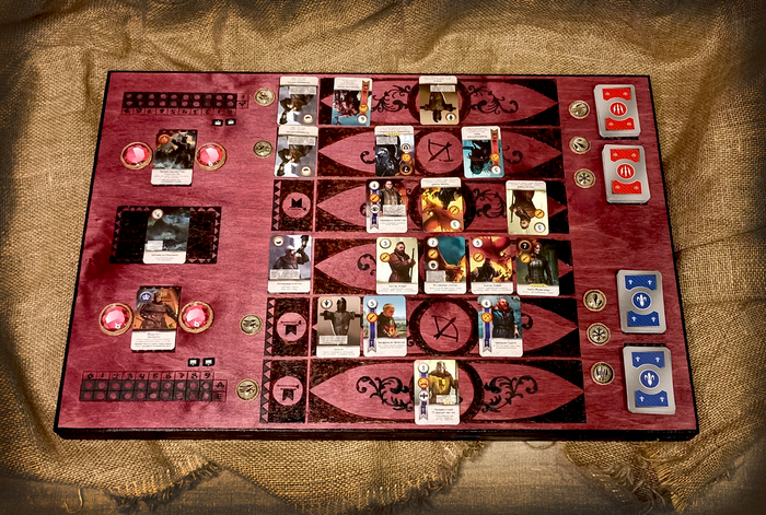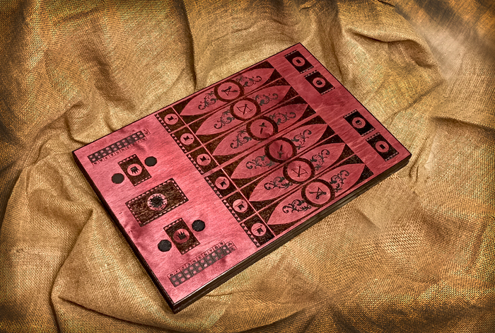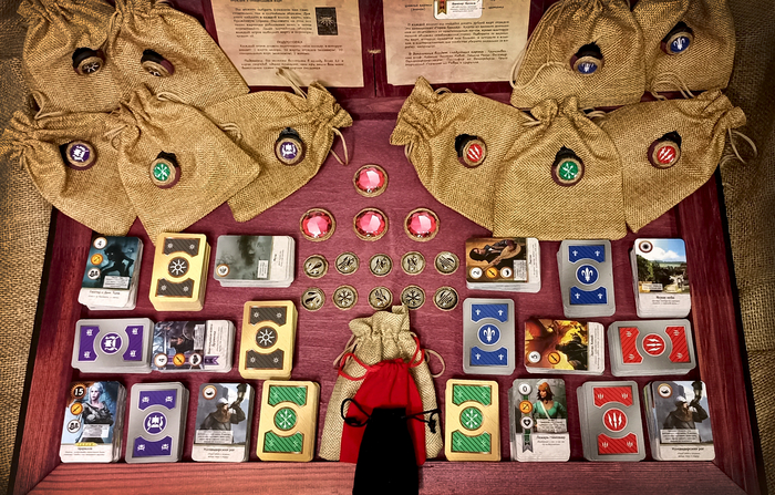Гвинт –это карточная игра из вселенной Ведьмака. Сделала её в подарок на день рождения для чудесного человека (а может и "не человека" ... я иногда его в этом подозреваю, уж слишком он крут =))) ). Ушло на эту штуку прилично времени, многое делала в первый раз. Сначала соорудила игровое поле, а потом уже и "внутренностями" занялась . Много выжигала, красила, рисовала, клеила, а потом всё это собирала. Добавила отсебятины. Получилось вот такое изделие. По-моему, вышло не плохо =) Игра в моём варианте представляет из себя плоский сундучок 50х70, одна сторона которого и есть игровое поле, внутри мешочки с картами отрядов и лидеров фракций, кристаллы для подсчёта выигрышей и погодные кристаллы, фишки для подсчёта очков и правила, конечно =) Было очень интересно всё это делать.