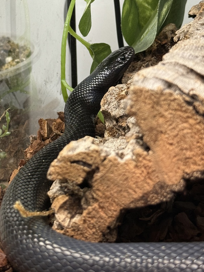 У меня же живет Мексиканская черная королевская змея. Это еще подросток, ей чуть больше двух лет, поэтому она еще немного вырастет.