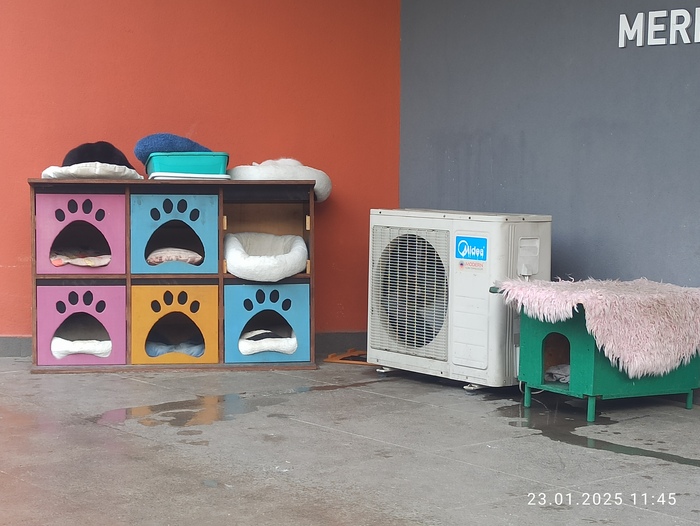 Очень много домиков для них и мисок с едой, не раз видел как жители ходят и рассыпают целые пакеты сухого и влажного корма.