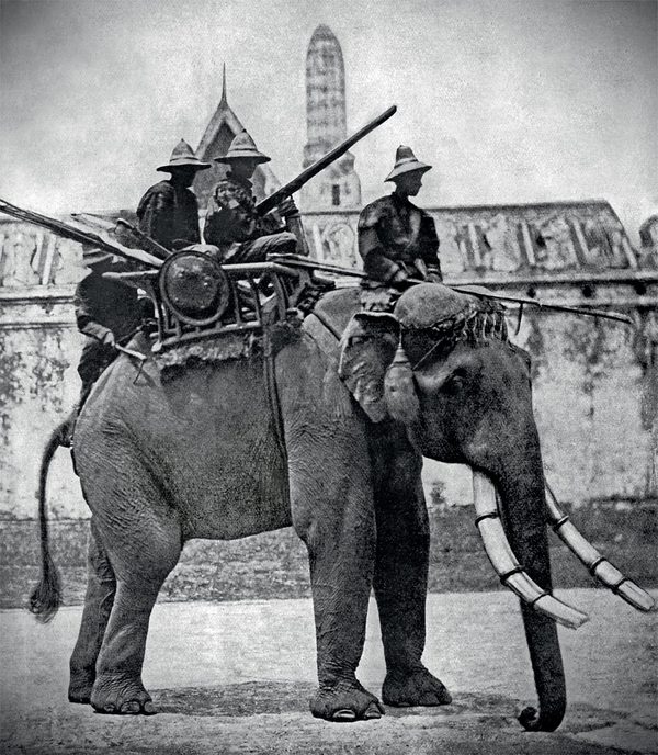 Артиллерия XIX века изгнала слонов из первого строя атакующих армий. Самые рослые и красивые животные становились «боевыми командными машинами», с которых полководцы наблюдали за ходом битвы, а при необходимости участвовали в популярных на Востоке поединках между вождями противоборствующих армий. Слоны с менее внушительной внешностью все чаще использовались в качестве тягачей.