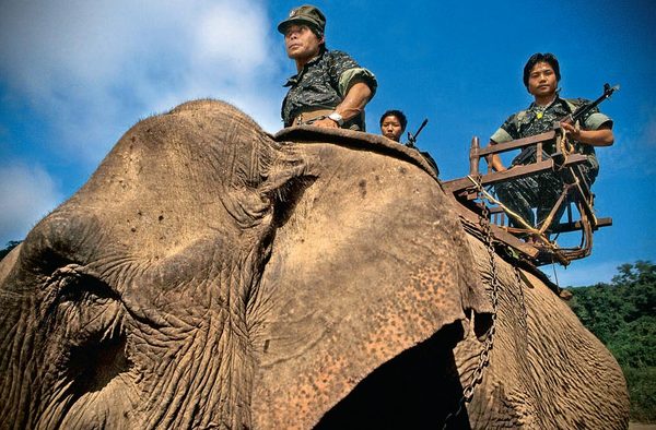 В XX веке слонов-тягачей потеснила стальная техника, хотя не везде: во время Второй мировой войны животные служили в джунглях Бирмы как универсальный транспорт. С появлением вертолетов машины перехватили у слонов и эту функцию. Но вездеходные качества животных продолжали использовать в своих боевых операциях партизаны Индокитая. Хмонги и другие вьетнамцы-монтаньяры, участники вьетнамской войны, пересекали непроходимые леса на слонах. В 1997 году патрули бирманских повстанцев из «Армии Бога» делали то же самое. Гражданская война в Бирме закончилась компромиссом 2012 года: был заключен мирный договор между правительством Мьянмы и представителями Каренского Национального Союза. Возможно, этот документ стал последней страницей в истории о боевых слонов.
