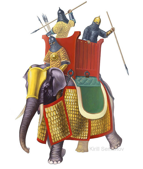 Впервые слонов для боевых действий стали приручать и обучать в Древней Индии, и уже в первой половине I тысячелетия до нашей эры этот род войск прочно удерживал ведущее место в армиях государств Индостана. Именно слонов древнеиндийские авторы считали основой войска, хотя на самом деле важнее были скорее всего колесницы. Но для такого утверждения у этих авторов были свои резоны: помимо замечательных боевых качеств — мощи, массивности, скорости, поворотливости, послушания, ума, — слон был престижным животным, одним из олицетворении божественной силы, которая давалась в руки его властителям.