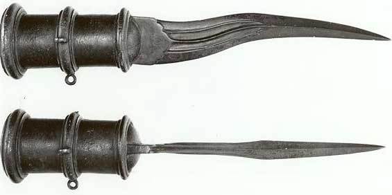 Для слонов предусматривалось как наступательное, так защитное вооружение. Боевые насадки на бивни (Индия). Сами бивни у слонов нередко подпиливают и в наше время, отсюда и такая форма втулки. До наших дней «дожила» только эта пара.