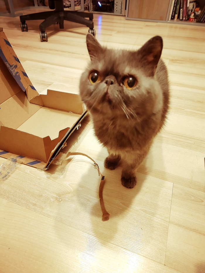 P.S. Прогулявший распаковку инспектор нашел игрушку в виде ленточки от коробки и тоже вполне себе счастлив и доволен.