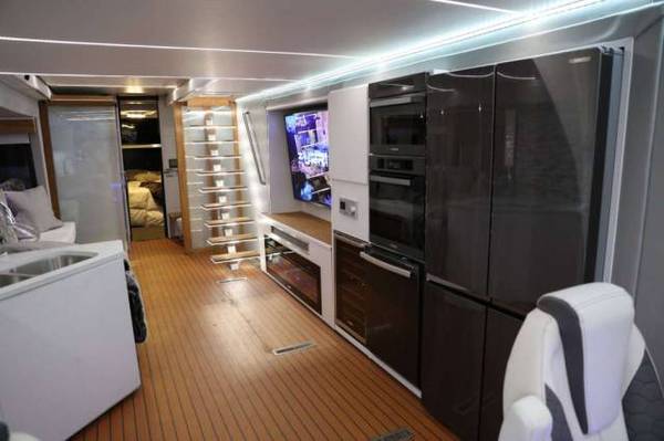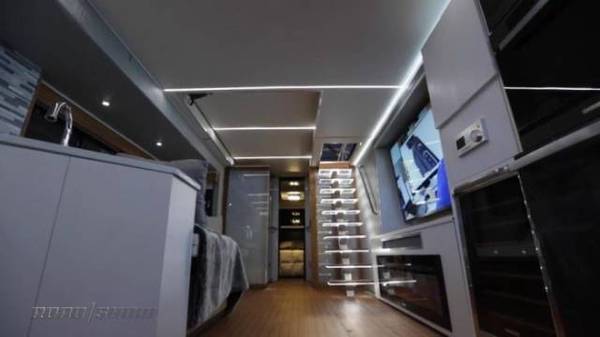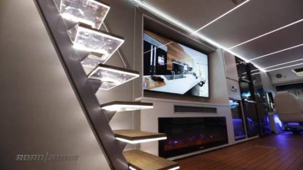 Этот умопомрачительный дом на колесах — настоящий дом для миллионера и он вмещает в себе всё, что вы могли бы пожелать и даже больше, для путешествий по всему миру. Удивительный автомобиль — дом с гостиной зоной, спальней, кухней, душевой, гидромассажной ванной и даже мини-вертолетом на двоих!