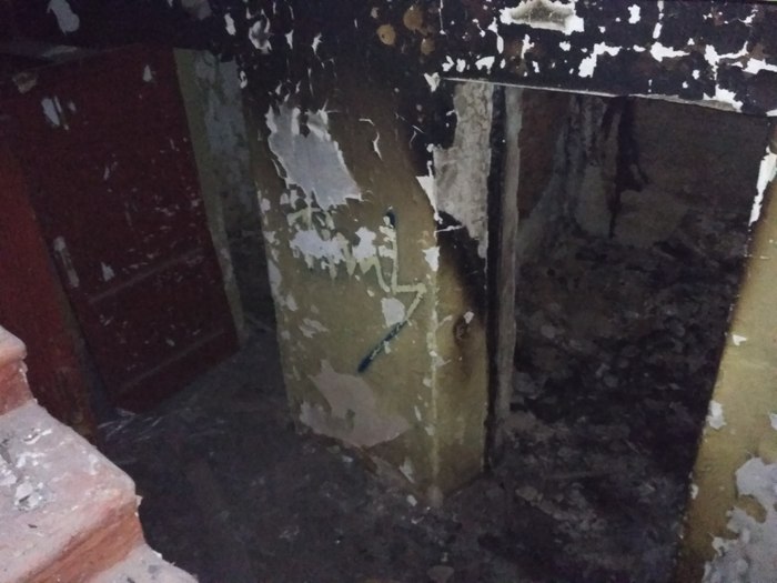 Ну и сам проход спереди, ну как проход, больше похоже на щель, и видим там черную дверь заваренную