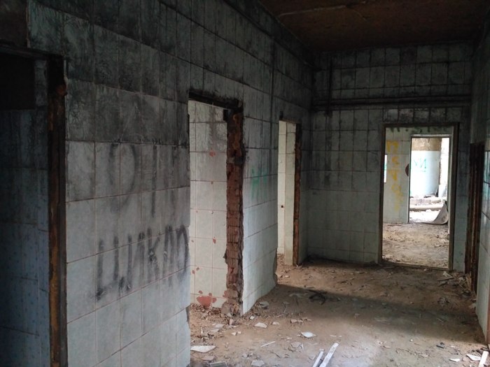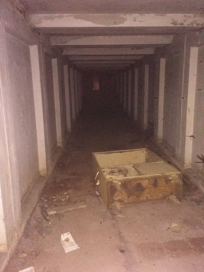 Он интересен тем, что, под ним находиться бункер, с палатами, по идеи этот туннель должен соединяться с рядом расположенной военной частью, но военные постарались закрыть все проходы, так что остался не большой туннель из госпиталя в соседнее здание на территории самого госпиталя, я не стал все фоткать, но можно найти хирургическое отделение и кабинеты и все это под землей)