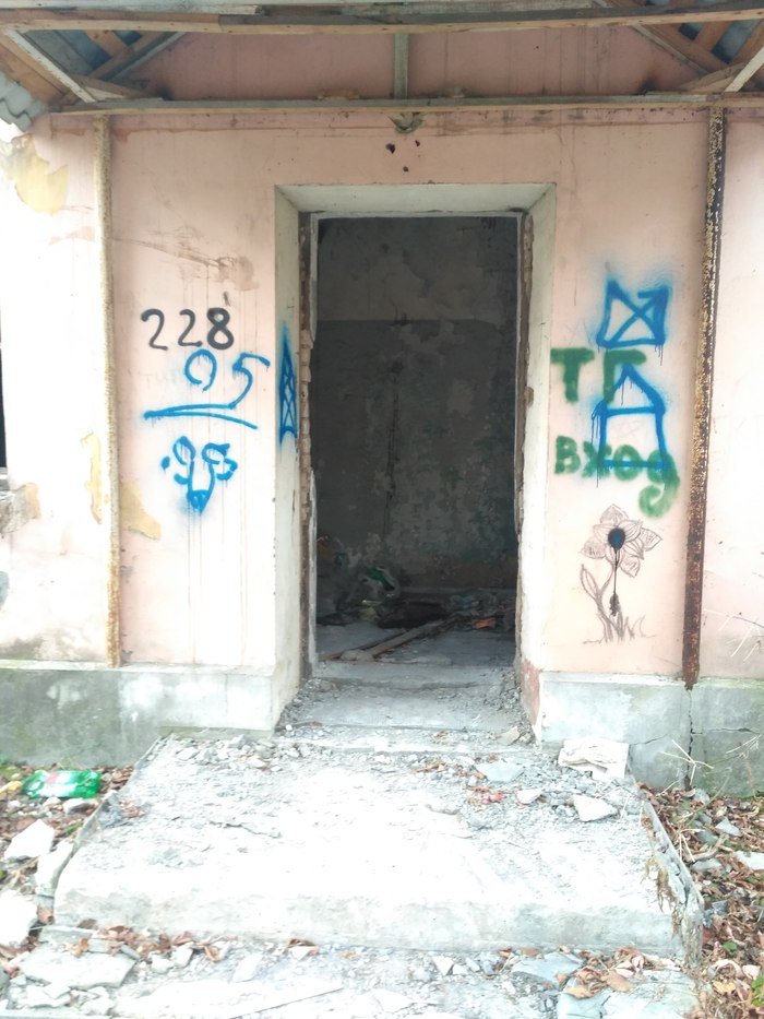 Сам госпиталь и вход. По территории щас опасно в ходить, так как нахождение на территории в открытую ,опасно, так дебилы неумные люди, очень любят шуметь громить, поджигать госпиталь, а соседи вызывать ментов, рядом находиться жилой дом. Из за частых пожаров, один год, всегда рядом дежурила машина.