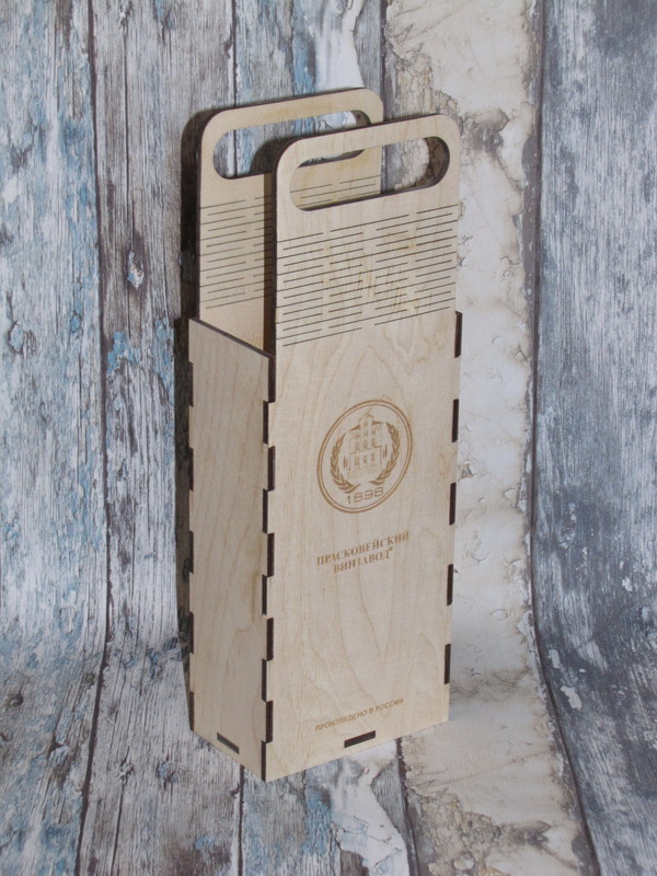 Шипоящик с гибкими ручками из фанеры 4 мм с гравировкой логотипа Прасковейского винзавода .