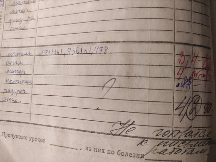 И в 77 и в 2002, этот человек каждое утро встречал своих учеников в вестибюле школы, здоровался с каждым учеником разговаривал с ним и его родителями, он каждое утро ВСТРЕЧАЛ учеников на "пороге" школы...Он был строгий, но в то же время очень добрый и терпеливый, он всегда ждал, что провинившийся по поведению или успеваемости школьник, сможет сам исправить свои ошибки. Это учитель, который верил в своего ученика до последнего... Посмотрите какие он ставил пятёрки по истории в дневнике: