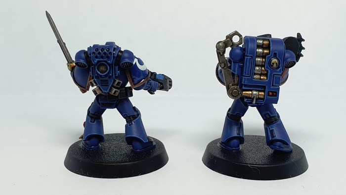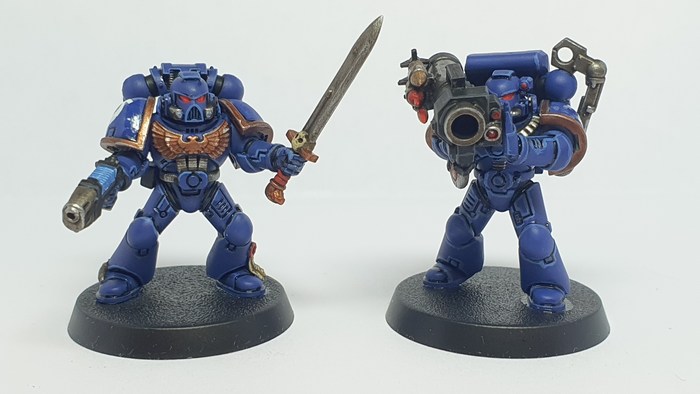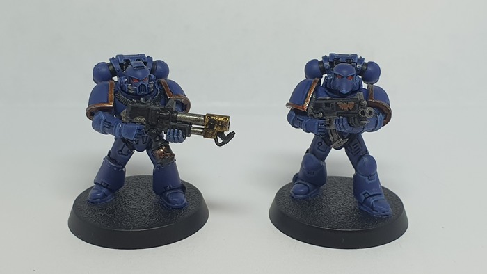 Вторая пара пацанов. Тут уже я немного поизучал различные видосики с ютуба об основных техниках и приемах покраски, докупил немного красок, зачистил и собрал миниатюрки полностью. И вот результат: