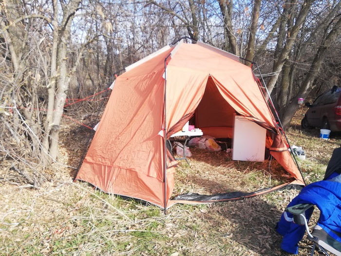 А с утра по реке пошли катера водной полиции, рыбнадзора, гимс и мчс. К нам подошли и культурно объяснили, что с 1 апреля губернатор АО объявил карантин и полный запрет рыбалки до 1 июля. Дают нам пару дней на протрезветь и свалить домой, если поймают на лодке на воде, то конфискация как в запрет со снастями. Спорить с властями мы не стали и через денек весенняя рыбалка 2020 была завершена, так и не успев начаться. На фото преобладает мой друг, вот он. Я второй.